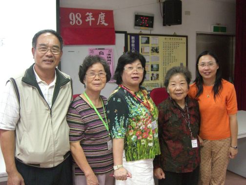 三芝紳士協會會長袁公瑾任職三芝鄉公所社會文化課長,公務生涯雖然繁忙,仍然熱心公益,其精神叫人佩服,隨其一起進入教室的袁媽媽更了不起,出生於1921年,仍然耳聰目明,每節都到勤的全勤紀錄,是同學們的偶像,遇到這種國寶級人物,當然要為她拍照,同時送其真情與實話這本膾炙人口的回憶錄(最近才獲頒2009客家終身貢獻奬)。