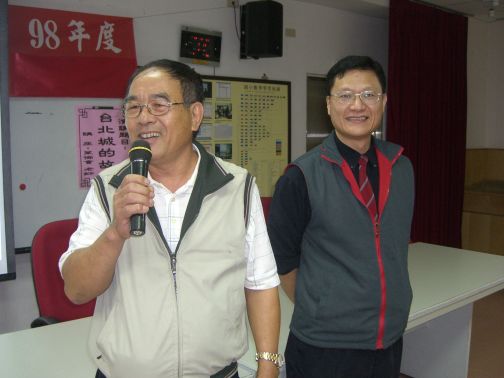 2009年9月份北台灣媽祖文化節時,向賴主委報告,10月21日晚上將到三芝國小三芝紳士協會和三芝的鄉親分享台北城的故事。時間過得很快,10月21日早上正為如何前往傷神之際,好像心電感應般,賴主委電話詢問,不是說要到三芝嗎?盛情當然要接受,約好晚上6時,在捷運紅樹林車站見面,再一起前往三芝國小,雖然只有短短的30分鐘,有許多體己話可以分享。