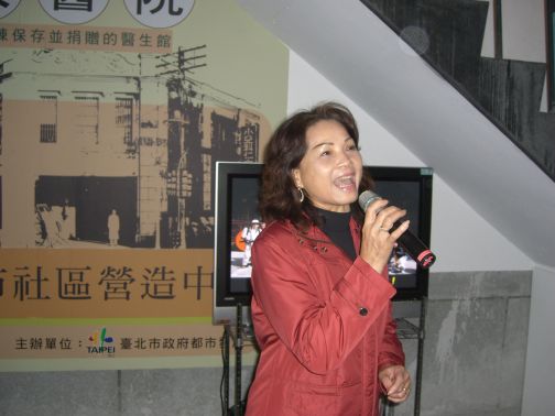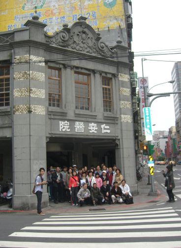 活動開始,首先請大家為在澳洲旅遊的鄭佑儀鼓掌致謝,然後邀請前任會長,美麗的客家女孩清唱客家本色,她的年華看似四十幾許,但大家稱她阿婆,將這首歌詮釋得一級棒,不少朋友忘情的喊安可,但活動終究是史蹟導覽,儘快將其拉回主題;請大家共同為今天營造優質的活動空間,旋報告仁安醫院的沿革,柯謙諒父子在這兒行醫的簡介;舉辦活動的宗旨,希望能似楓橋夜泊詩一般,讓參加活動的朋友經由認識與了解,運用筆、便捷的口才或精湛的攝影,讓全世界的人知道大稻埕乃至台北的美麗,因而到台北作客,讓店家賺大錢。