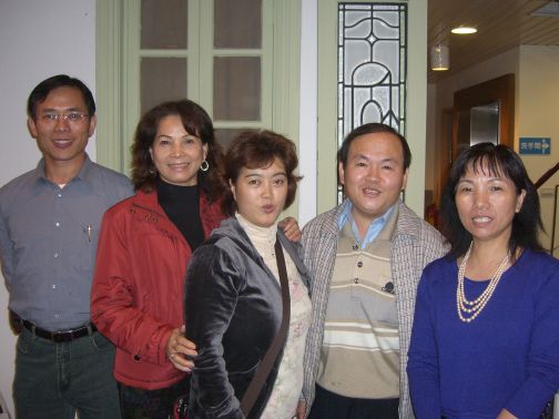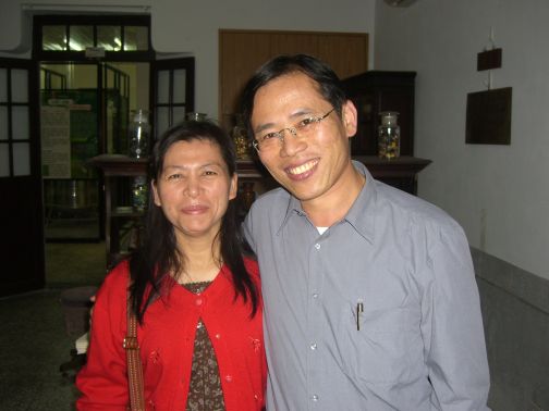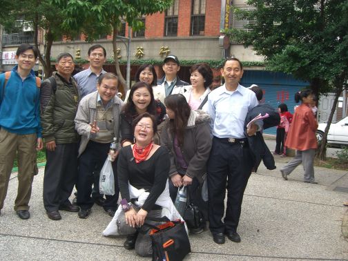 台北縣口才訓練協進會和建言社的成員,每位都是重量級人物,在其本業上有傑出的表現,王東大會長為今天的活動奉獻許多心力,請他和吳源泉班主任合照。四十幾位朋友中,夫妻檔有五對,為他們拍照是這一兩年史蹟巡禮或演講場合的習慣。為表示對參加者的尊敬,請俊閔將積福和養生乙書親手送給每位貴賓,同時也分送和平鴿,俾做為今天巡禮的參考資料。此外,朋友中有發明大王陳各全,據王會長說,其中風後,發明多功能保健復健椅,不但消除自己的中風後遺症,今天連走三個多小時,一點也不輸年輕小伙子。
