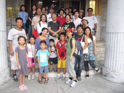 報名踴躍並且宣布額滿是有原因的,早在8月19日,就有高氏夫妻檔報名,他們原來住在雙連附近,或許是緣份,高先生和第二位報名的林小姐是舊識,年輕時任職同家公司;最早到的是來自桃園的兩個家庭,三個大人和三位小朋友,其中一位小朋友讀幼稚園,而他完全靠自己的力氣走完全程,大家當然要為其鼓掌鼓勵;住在延平北路的張小姐,原來僅報名先生暨三位小朋友,連公婆一起來,計七人,可見婆媳的好交情,而婆婆是客家人,送其真情實話乙書,72歲的公公連問是否屬於古蹟人物,在日本,八十歲以上被視為國寶級人物,只好請這位電信研究所退休的大哥,好好保養身體,若此,就有希望成為國寶級人物;日新國小老師和當代美術館的王家姐妹花,相似度近百分之百,不但長得甜美,始終保持微笑的臉孔,腦海浮起微笑是最美麗的動機這句話;9月25日參加大稻埕老街攝影巡禮的夫妻檔、同學計四人連袂而來,對他們的支持,心中存著滿滿的感激;溫志威帶著美麗的女友同行。其他成員因為沒有對談,而不曉得身分,但每位都是貴賓,希望假以時日,以認識這些好朋友為榮。