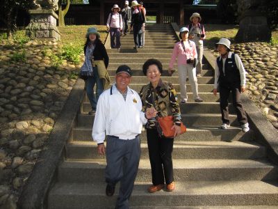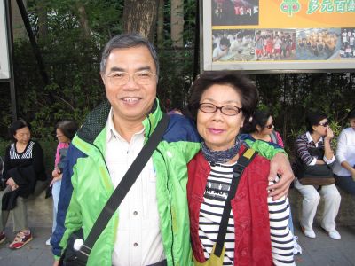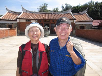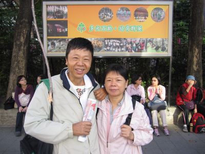 為兩位會長拍夫婦合照時,盧錫萊老師和楊朝立班長先後抵達;有位同學表示,特別邀其住雙連的朋友參加,亦為這對夫婦拍合照。8時10分,遊覽車準時在百齡高中校門口出發,經盧老師介紹後,向大家報告今天的行程暨與眾不同的特色,尤其是中午要吃客家料理,希望高高興興的出門,再開開心心的回家。報告時,發現大家布滿笑容,是一群有錢、有閒又懂得生活情趣朋友,因而預定,今天絕對是愉快又舒服的一天。
