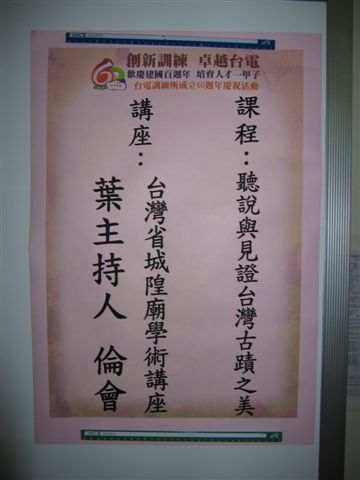 台灣省城隍廟學術講座(台北市武昌街一段十四號二樓)