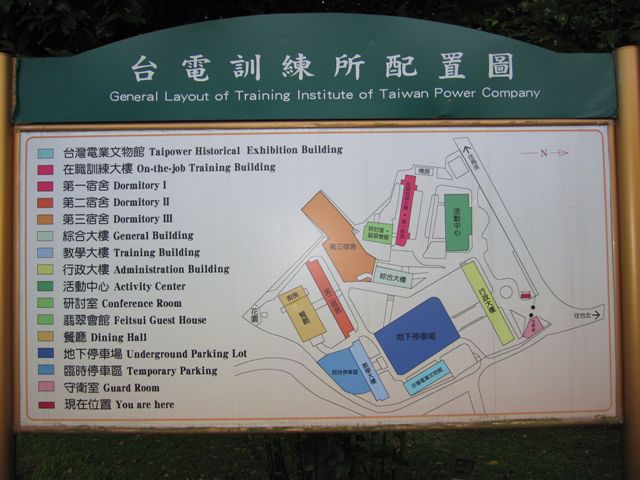 對史蹟產生興趣,源於「認識才會產生感情,了解才會產生愛。」,進入大門時,先認識環境,行政大樓前有兩個似瀑布的裝飾藝術,究竟是風生水起還是飲水思源,腦海有幾許的問題;圓環旁邊的勒石寫著「止於至善」,應該是訓練所對老師、學生和課程的理想;進入大門,感受到內部寬敞、環境清幽,誠如回家交通車同坐的林姿琰老師說:「前往上課最愉快的經驗,沿途盡是青山綠水-美啊!」
