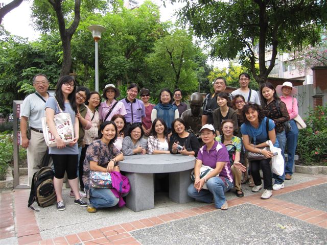 離開台北孔廟的時間是下午三時,請司機大哥自酒泉街直開環河北路到環河南路,從桂林路到學海書院,沿途報告,清領台灣212年,興建有六十座書院、學海書院、明志書院的故事,也隨機就所見景觀做簡單的介紹。學海書院由淡水同知婁雲捐建,歷經曹謹,後來由陳維英接任院長,因書院現為高氏宗祠,平日不開放參觀,承管理人員同意,讓大家在旗杆前合照,當然要介紹旗杆暨杆上一個斗的意義。
