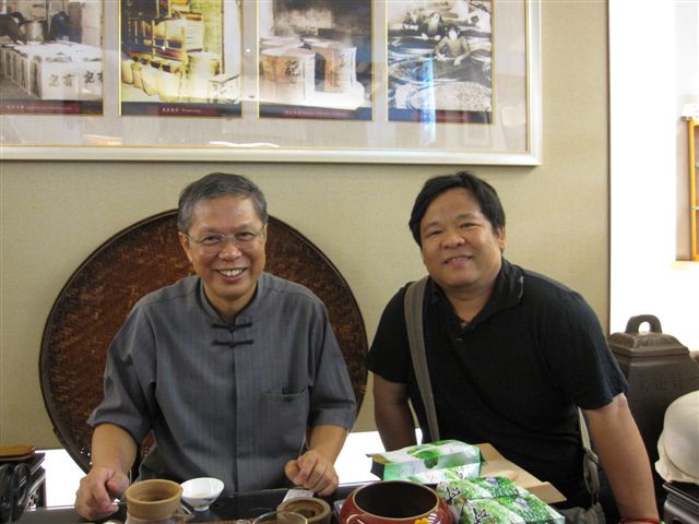 黃總監是認真的人,約9月24日中午導覽完大稻埕老街攝影巡禮後,在有記荼行碰頭,當然要為他和王連源老闆拍張合照。視準時為效率的表徵,和參加活動朋友約在台北孔廟集合,黃總監指示的時間是下午1時40分,準時到台北孔廟,因孔廟內部整修,遂在街口等待,將書置於石椅後做平甩功,見一女孩歡喜的拍攝大龍街和酒泉街口的三隻石猴(非禮勿視、非禮勿聽、非禮勿言)和周遭圖案,因而請教她怎麼這麼快樂,原來朱小姐畢業於成功大學歷史系,遂和她分享石猴有馬上封候暨上述孔子的三個論述,並提及另外幾個六藝的圖案,告訴朱小姐稍後將和一群熱愛史蹟的朋友分享台北孔廟之美,若有興趣,歡迎參加。