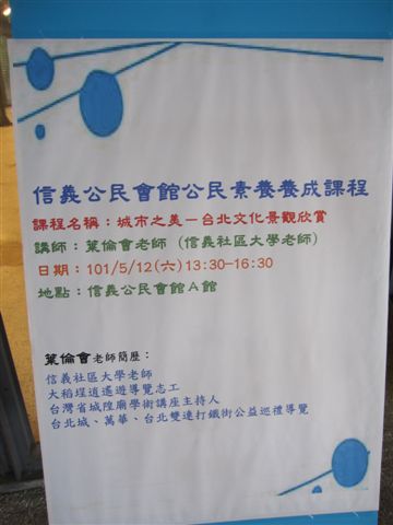 台北市信義區公民會館演講「城市之美-台北文化景觀欣賞」隨筆(2012.5.12下午)