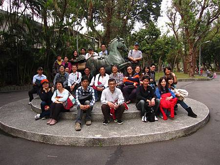 春天的天候變化快速,早上的氣溫頗低,中午卻是太陽高照,擔心沒有太陽的時候,氣溫可能下降,穿件背心,騎腳踏車載積福和養生暨台北城的故事到新公園,抵達銅牛處,鐵工局的長官大部分已經抵達了。
